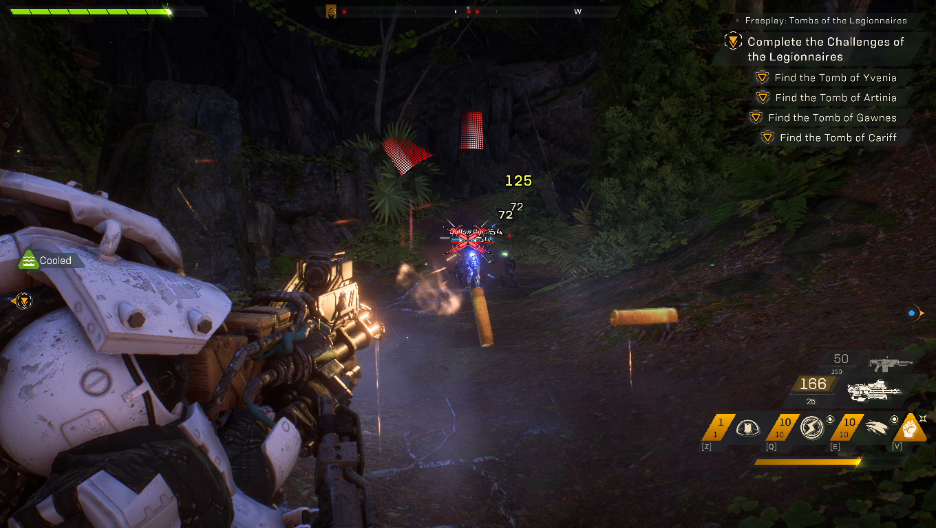 Pero no todo son disparos a diestra y siniestra, ya que cuentas con habilidades que te pueden ayudar a hacer mas daño o crear situaciones en el que por medio de un sistema de “combo” (No como los de hack & slash) puedes hacer mas daño por combinación de efectos, daños y habilidades. Estas acciones no cuestan munición, pero tienen un tiempo de enfriamiento y en algunos casos es un poco elevado. Más adelante, cuando hay mayor dificultad, es muy importante que aprendas cómo funciona el sistema de combo pues es muy necesario para poder ayudarte a limpiar oleadas de enemigos o acabar un poco mas rápido a algún jefe que se puede poner pesado.