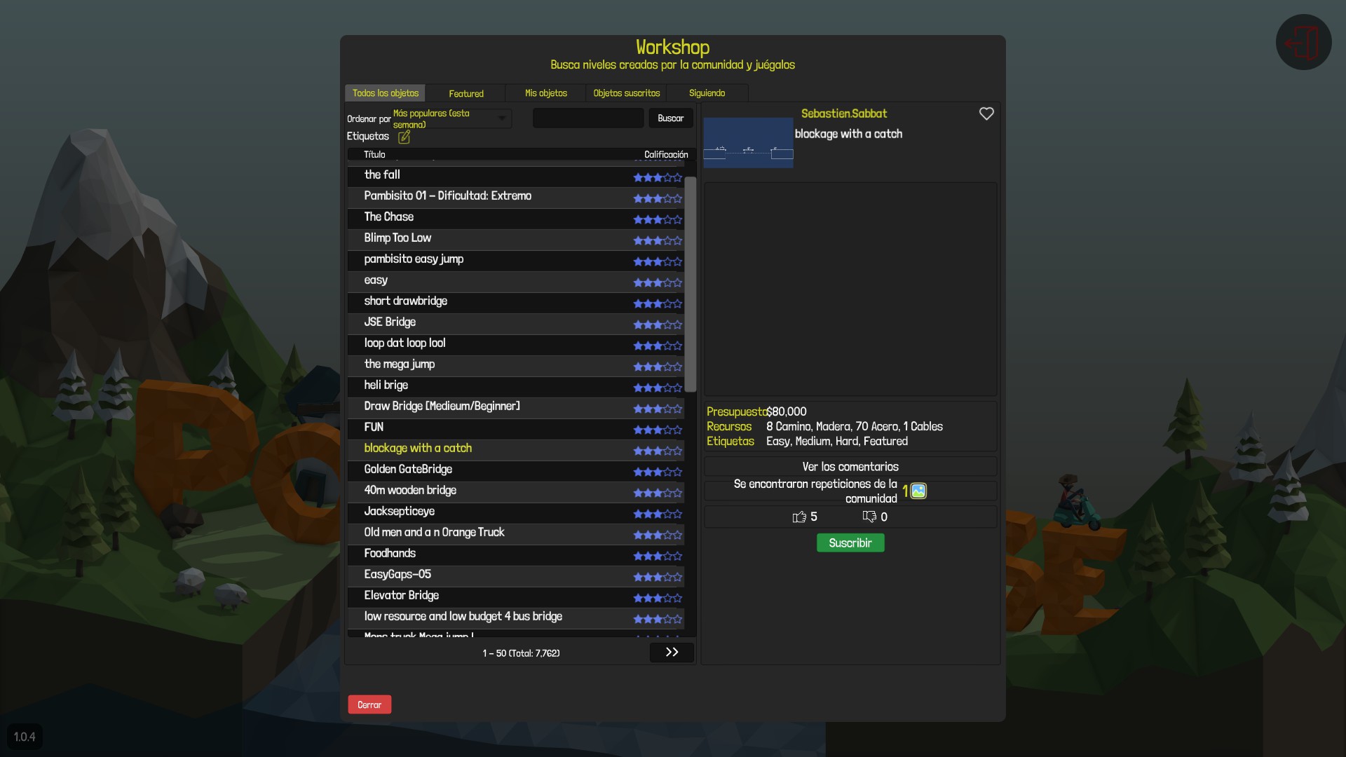 Poly Bridge cuenta con un modo de construcción libre bastante completo, el cual te permite crear tus propios niveles e insertar tus propios obstáculos y/o vehículos, para más tarde, ya que hayas terminado, compartir tu creación con la comunidad de jugadores. De igual manera está el soporte de la Workshop de Steam, que te permitirá acceder a contenido creado por modders y por otros jugadores y probar sus creaciones, valorarlas y votarlas. También está la galería, en la que puedes subir tus capturas o videos.