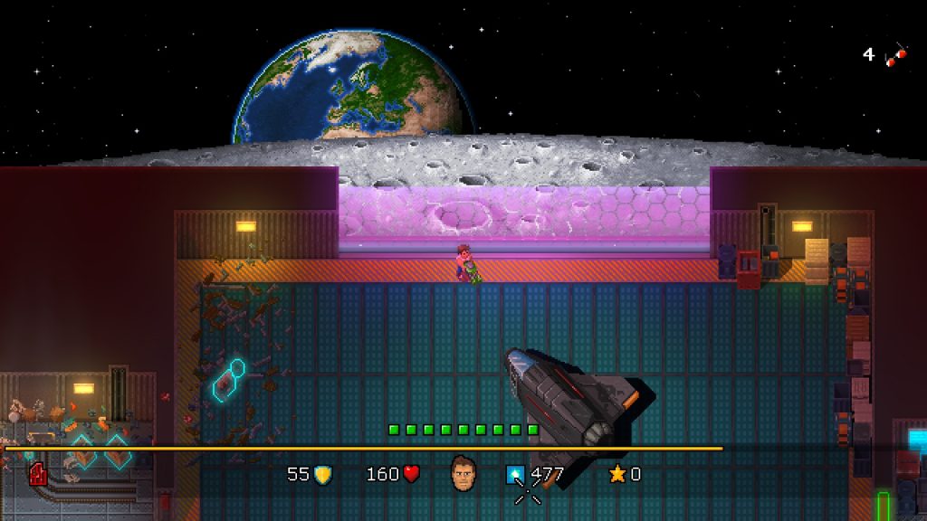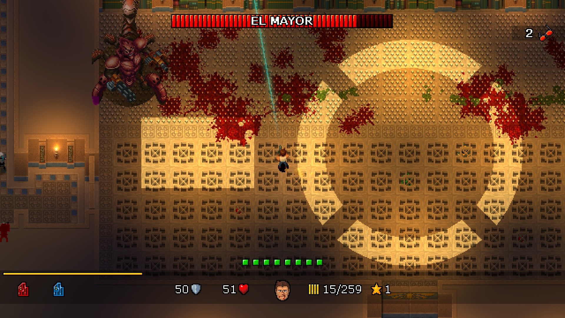 El aspecto gráfico está hecho con mucho amor, pues en los 10 niveles y sus diferentes escenarios, podemos ver un pixel art muy bien trabajado en cuanto al diseño de los mapas que nos llevan desde el antiguo Egipto hasta un laboratorio espacial, todo con paletas de colores muy bien equilibradas y un nivel de detalle amplio en cada elemento del juego. La banda sonora es otro punto a rescatar, pues cambia según si nos encontramos solo explorando o estamos por entrar en batalla, combinando perfectamente con la adrenalina de escupir balas sin cesar o con los momentos de tensión que podemos experimentar si llegamos a ser superados ampliamente en número, cosa muy recurrente.