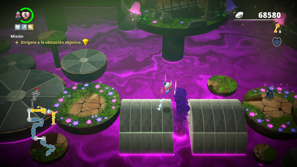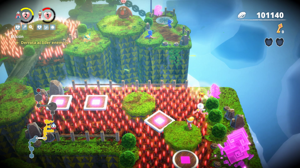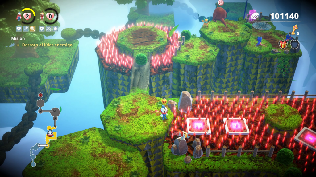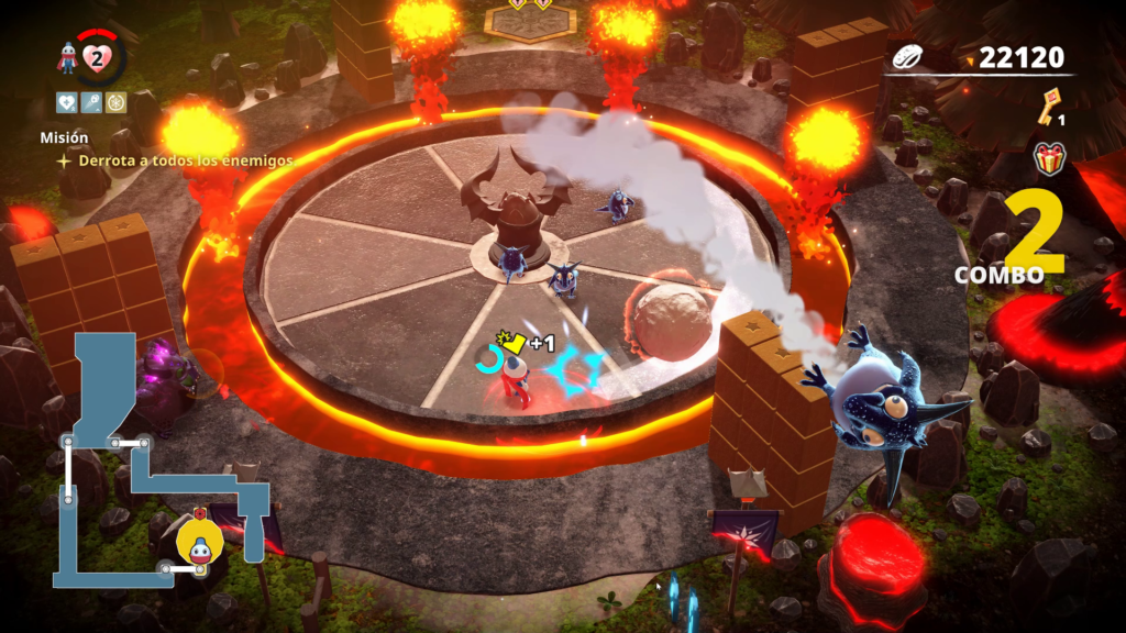 También pudimos notar que el trabajo de la cámara deja mucho que desear, ya que esta sigue solo a un jugador y los demás quedan fácilmente fuera de escena, dificultando la cooperación enormemente. En parte es compensado con presionar un botón y serás transportado al jugador «líder» con la corona.